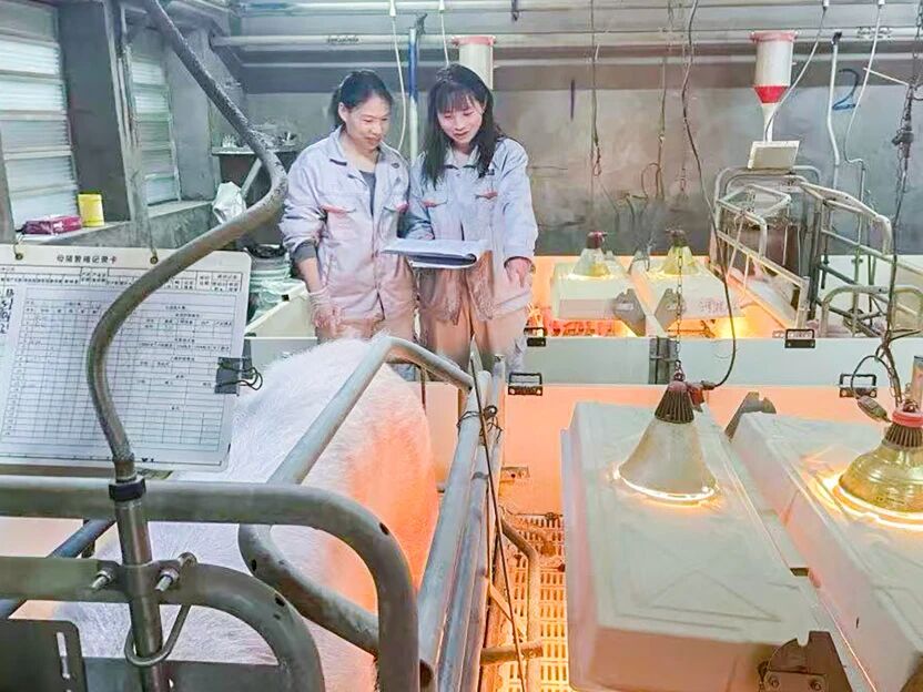 每天清晨,她第一个走进配怀舍,打着手电逐一检查母猪状态;傍晚,她最后一个离开分娩舍,确认饲喂记录完整无误。在产房,她手把手教新员工调拨“奶妈猪”。