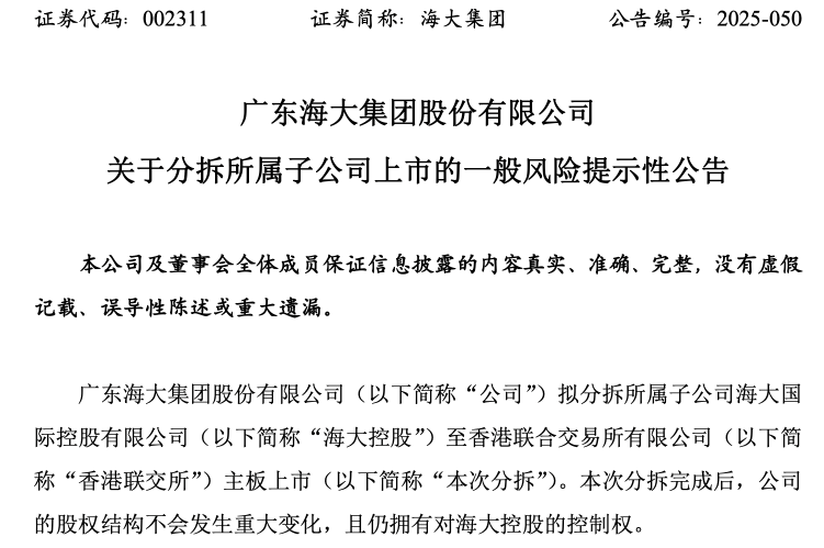海大集团(002311)10月17日晚公告,公司拟分拆所属子公司海大国际控股有限公司(简称“海大控股”)至香港联合交易所有限公司主板上市。
