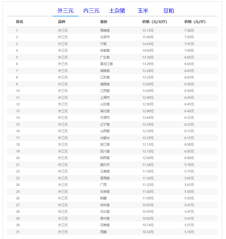 (备注:本文生猪价格及猪价特指活猪价格,并非是消费市场的猪肉价格,外三元、内三元、土杂猪则为生猪品种。)