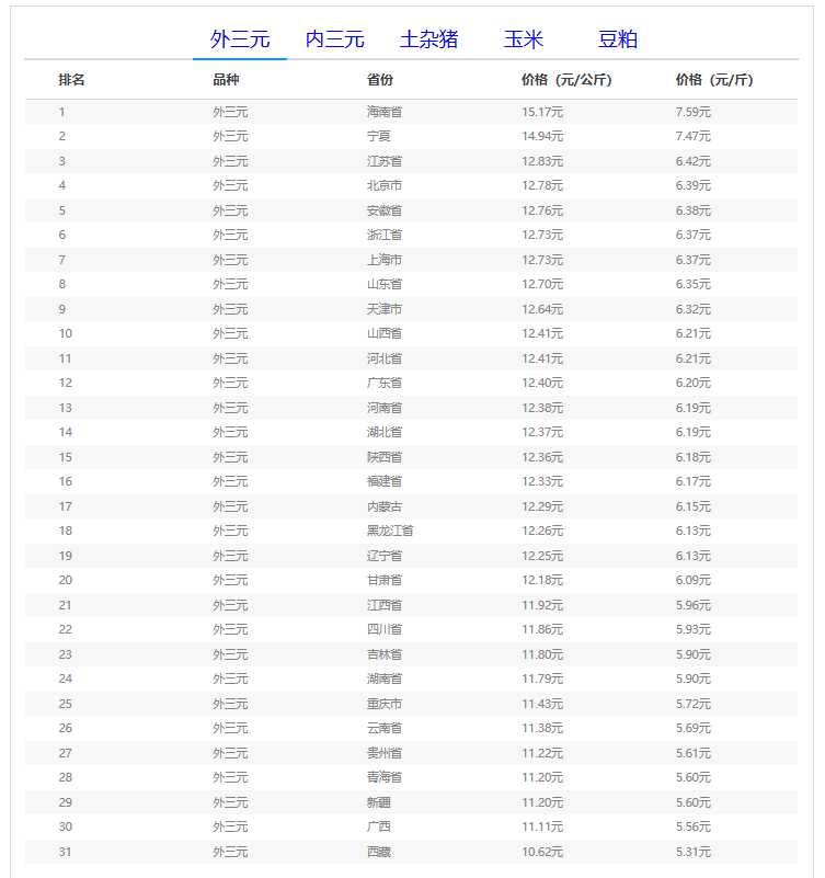 (备注:本文生猪价格及猪价特指活猪价格,并非是消费市场的猪肉价格,外三元、内三元、土杂猪则为生猪品种。)
