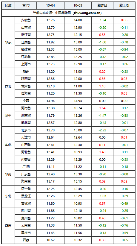 2025年10月04日-中国养猪网生猪(外三元)均价涨跌表